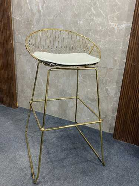 Elevate your space with this chic Modern Gold Bar Stool, crafted with a sleek metallic frame featuring a premium gold finish. The minimalist yet luxurious design blends comfort and sophistication, making it a perfect fit for modern homes, cafés, bars, and lounges.A cushioned seat ensures a comfortable sitting experience, while the sturdy build promises long-lasting durability.